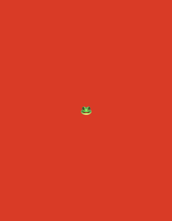The scene depicts a minimalist digital graphic featuring a uniform, solid red background. Centrally positioned, slightly below the vertical midpoint of the image, is a small, stylized frog head. The frog head is rendered in bright green with a lighter green lower jaw, two prominent black eyes each containing a white circular highlight, and a subtle, dark green curved line forming a smile. No people, discernible actions, or interactions are present, and the environment is entirely a digital color field without physical attributes. This digital graphic is presented within the contextual framework of Erba, Italy.