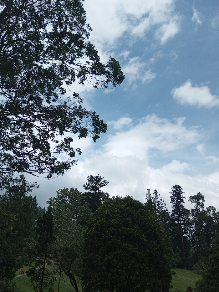 - "Lush green trees fill the lower half of the image, varying in height and density, while the upper portion is dominated by a bright blue sky dotted with puffy white clouds" by FM-AX1Wz1, licensed under CC BY 4.0