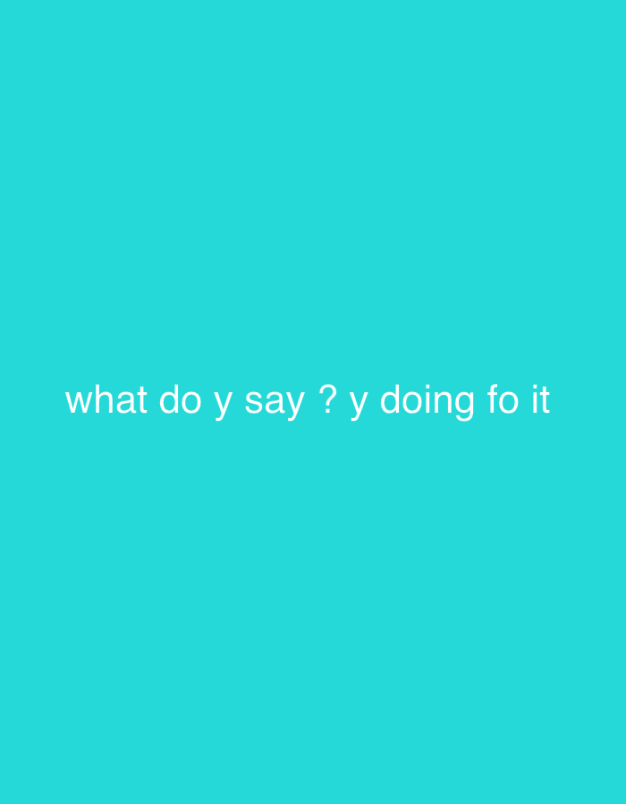 The image displays white text centrally positioned against a solid turquoise background. The text reads: "what do y say ? y doing fo it". No individuals, objects, or environmental features are present beyond the text and its background. No actions or interactions are depicted. A specific location in Tangier, Morocco, or any other geographical setting, is not discernible from the image content.