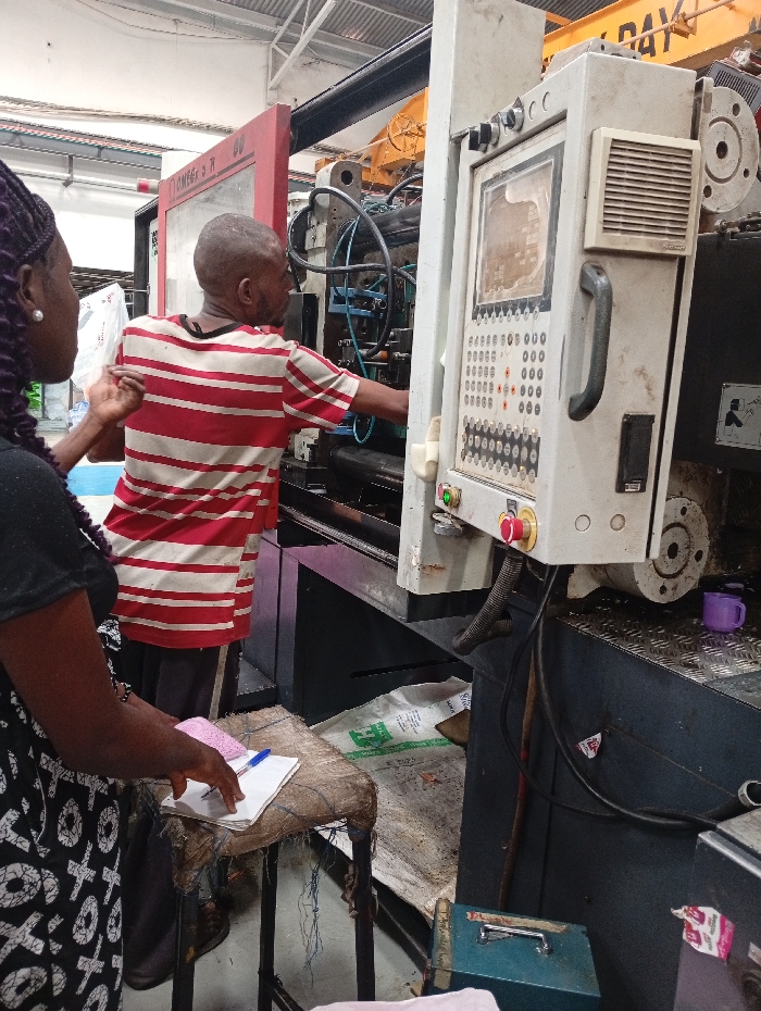 The scene depicts an industrial workshop located in Kawaji, Nigeria