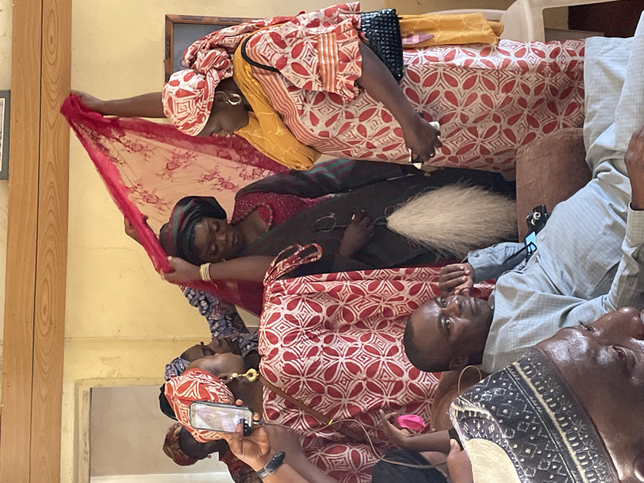 This image captures an indoor cultural or ceremonial gathering in Du, Nigeria
