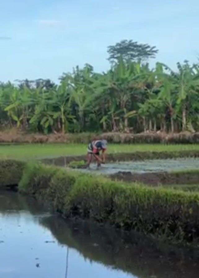 - "A farmer is planting rice seedlings in a flooded paddy field" by FM-OUOIE3, licensed under CC BY 4.0