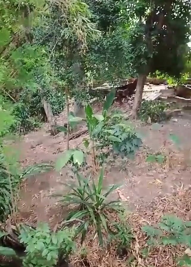 view of a forest floor. There are several trees of various sizes, dense green foliage, and leaf litter on the ground. The camera pans slowly across the scene, revealing more of the forest floor. The scene is calm and natural. A logo for Tecno Spark Go 2 is visible in the lower left corner of the screen.