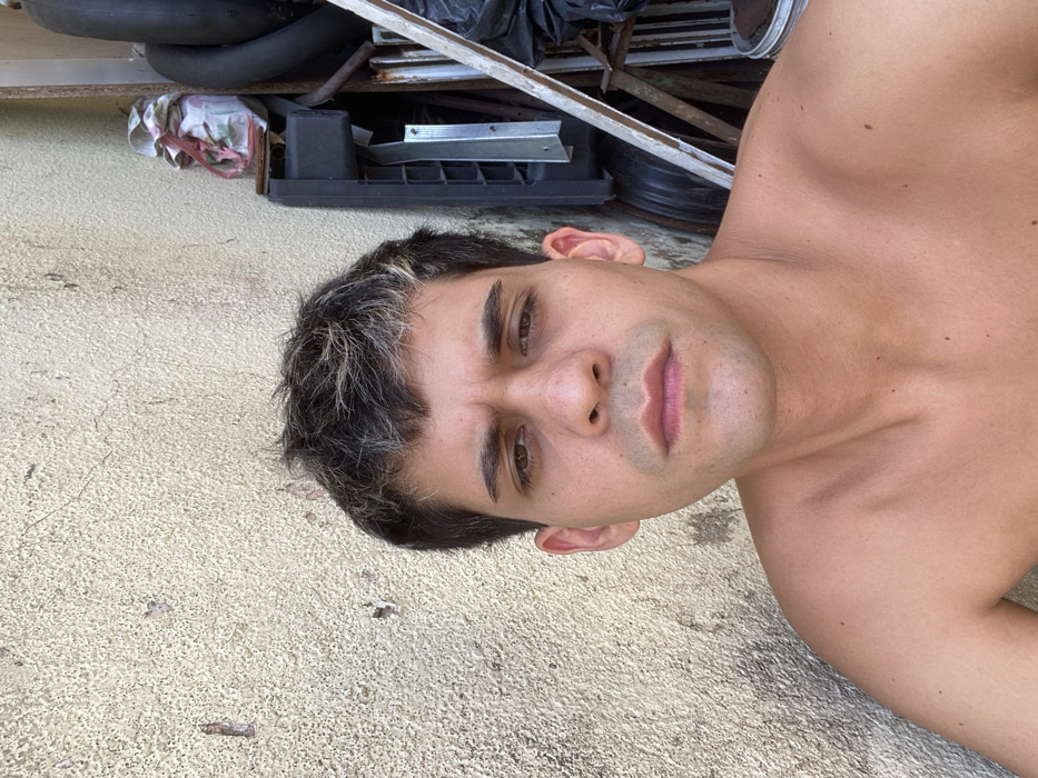- "A shirtless man with short, graying hair and brown eyes lies on textured concrete" by FM-tlj5s1, licensed under CC BY 4.0