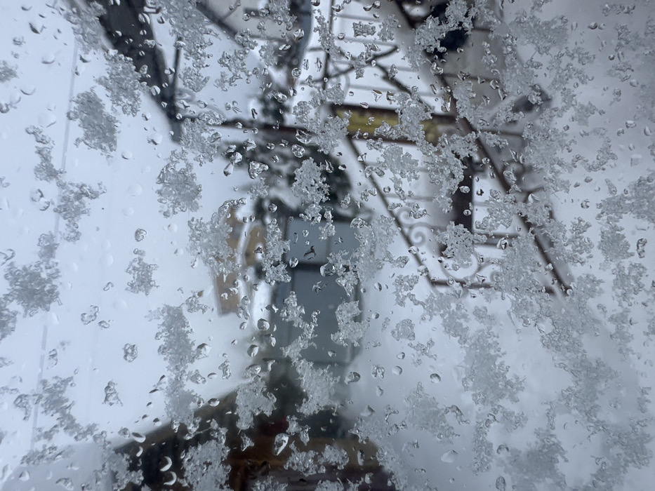 - "The image displays an outdoor winter scene in Kazan, Russia, viewed through a transparent surface, likely a window, heavily coated with irregular clusters of melting snow and clear water droplets" by FM-CYKiS2, licensed under CC BY 4.0