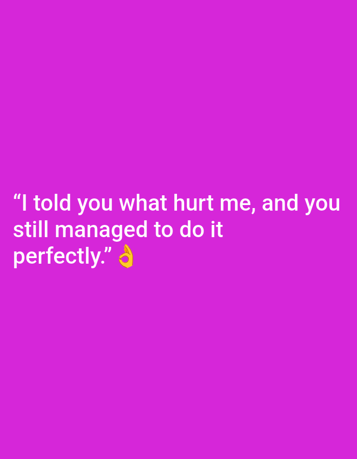 The scene, located in the city of Tixeraïne, Algeria, consists of a digital graphic. It features a solid magenta background. In the lower-left portion, white sans-serif text reads: "I told you what hurt me, and you still managed to do it perfectly." An emoji depicting a yellow-orange "OK" hand gesture is situated immediately after the text. No individuals, physical objects, or dynamic actions are visible within the image.
