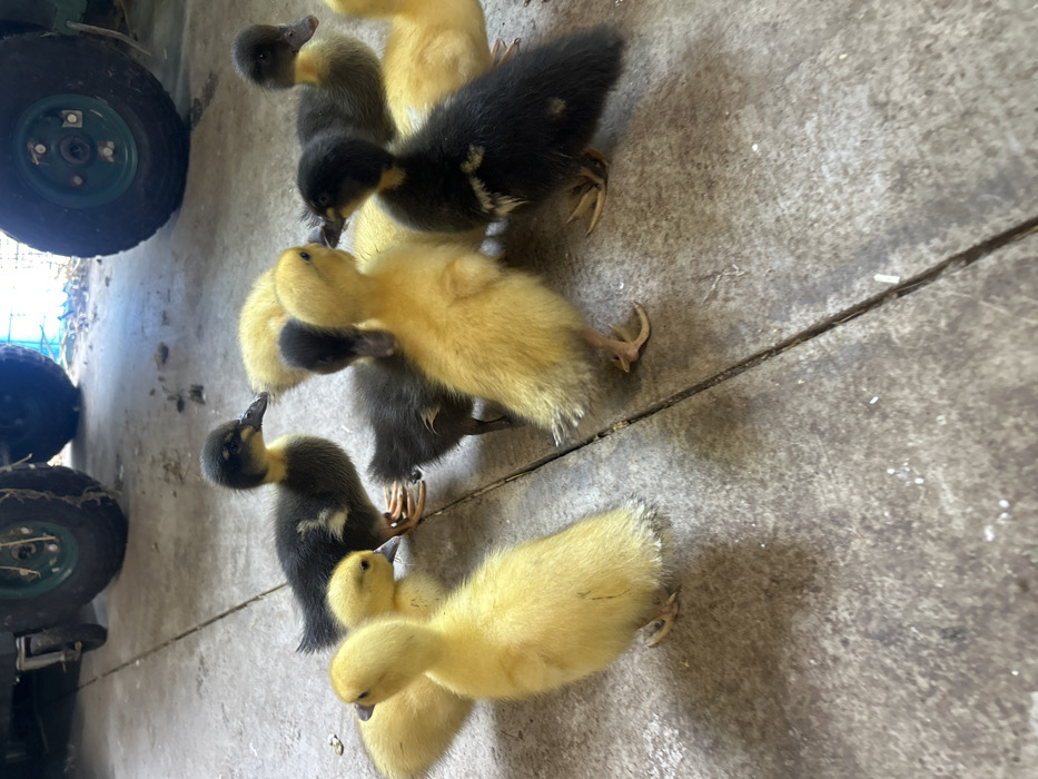 - "The scene depicts approximately ten to twelve ducklings of varying colors gathered on a concrete floor in Russell Vale, Australia" by FM-A0fME3, licensed under CC BY 4.0