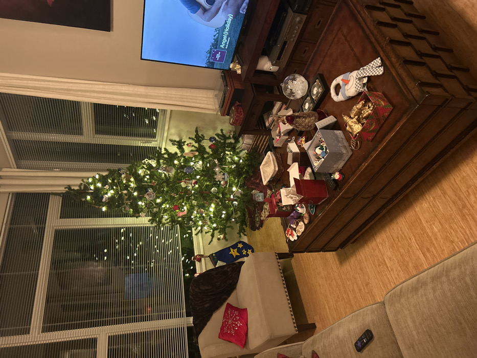 - "A living room is decorated for Christmas, featuring a lit Christmas tree near a large window with blinds" by FM-p02Wp2, licensed under CC BY 4.0