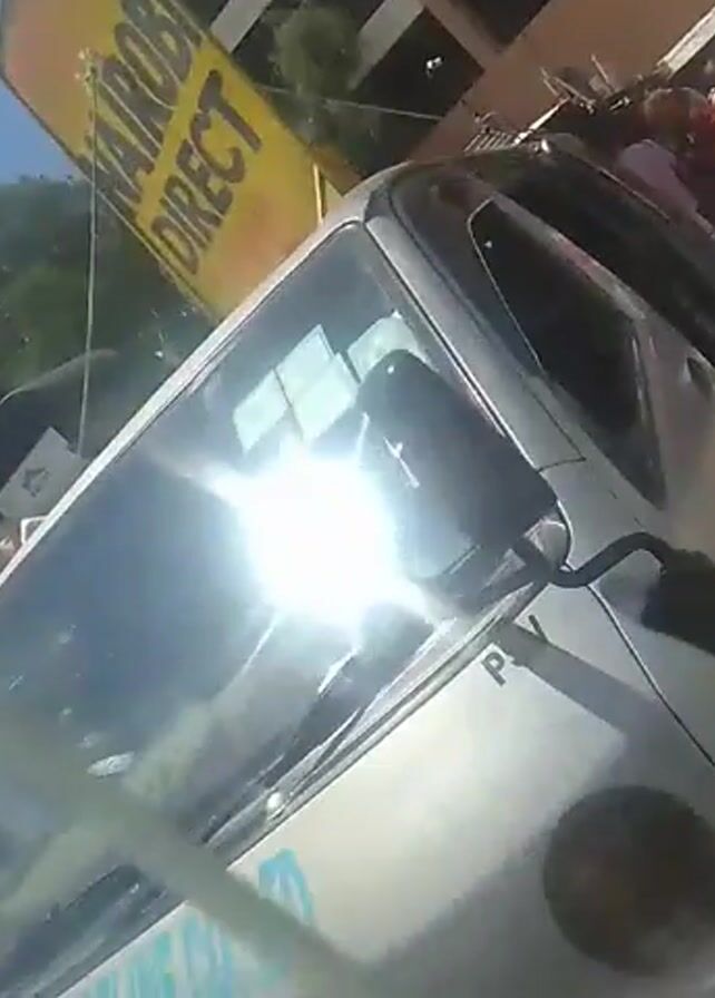 view from inside a vehicle in what appears to be a busy urban area, likely in Kenya based on the signage
