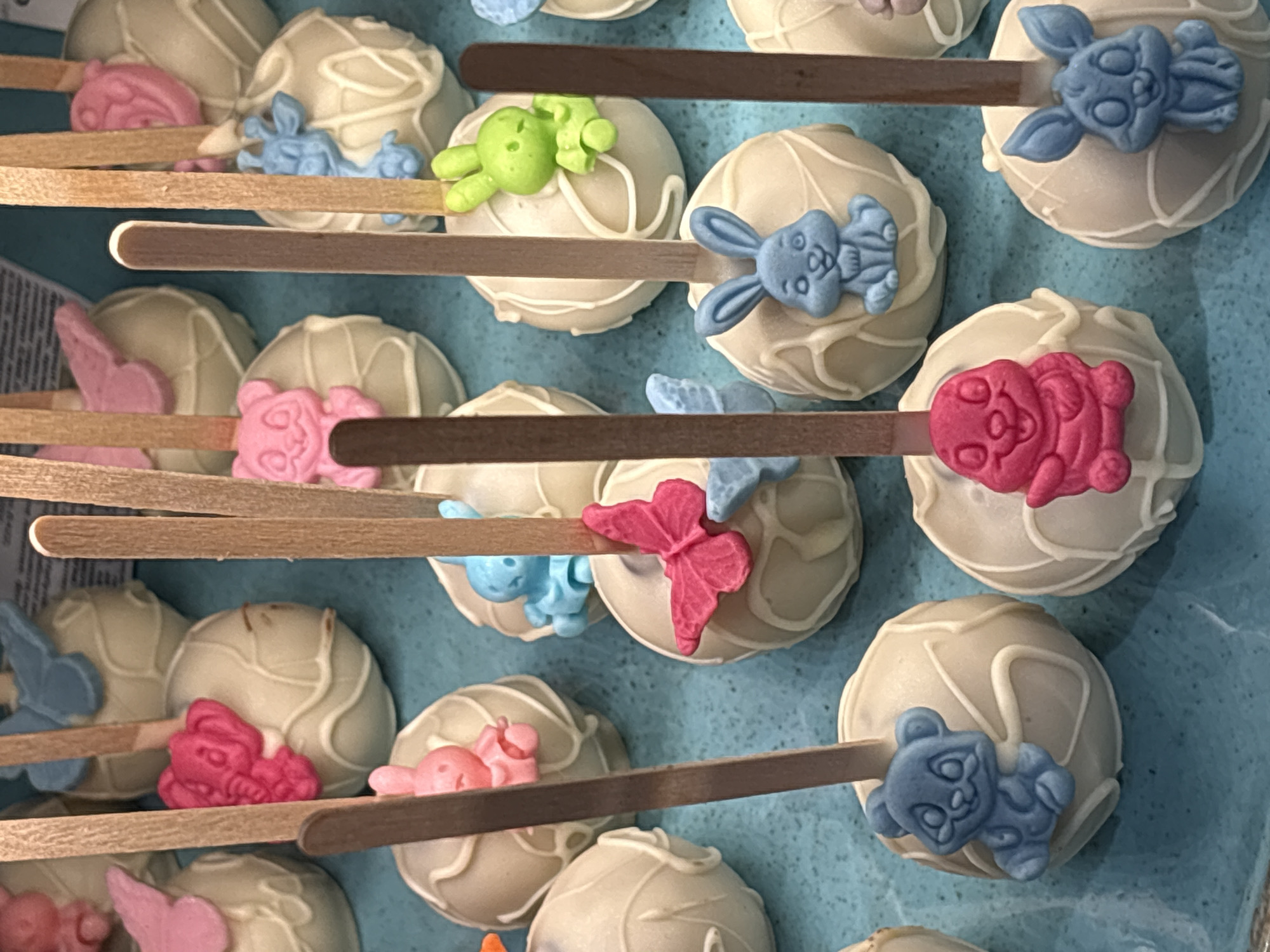- "close-up, overhead shot of a batch of white chocolate-covered cake pops arranged in a light blue container" by FM-2RVs73, licensed under CC BY 4.0