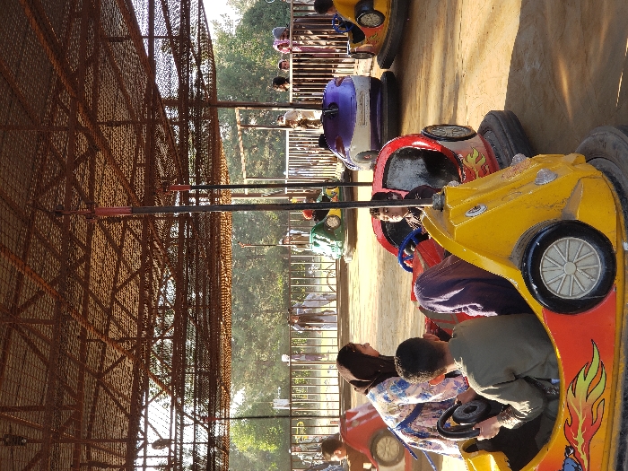 - "At an amusement park, several bumper cars, some with riders, line up on the track" by FM-NRl2w1, licensed under CC BY 4.0