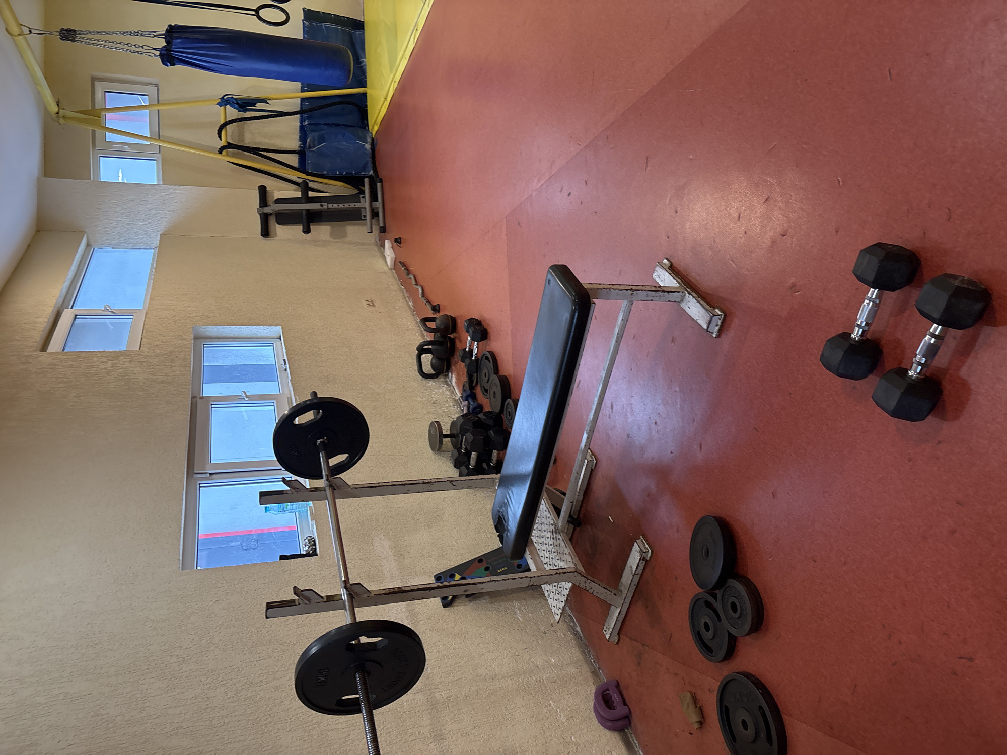 The image depicts an unoccupied, functional indoor gym or fitness area, situated in Nesebar, Bulgaria