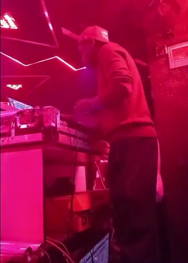 - "DJ in a booth bathed in pink and red light, operating equipment" by FM-To1kD2, licensed under CC BY 4.0