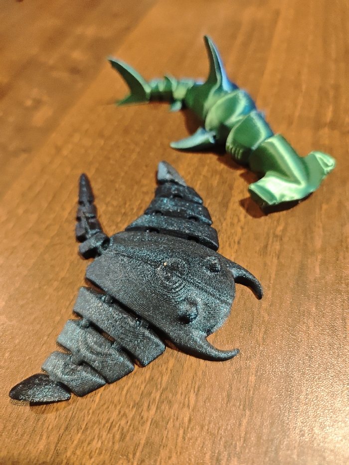 - "Two articulated 3D-printed marine creatures lie on a wood-grain surface" by FM-P9SdV2, licensed under CC BY 4.0