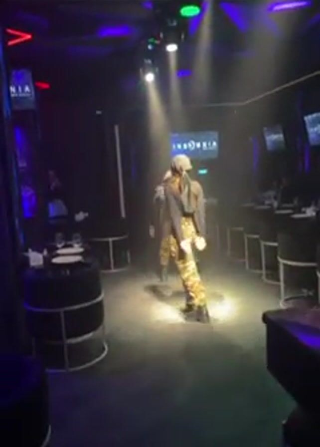 Inside a nightclub named "Insomnia," two performers are showcasing a dance routine on a designated stage area