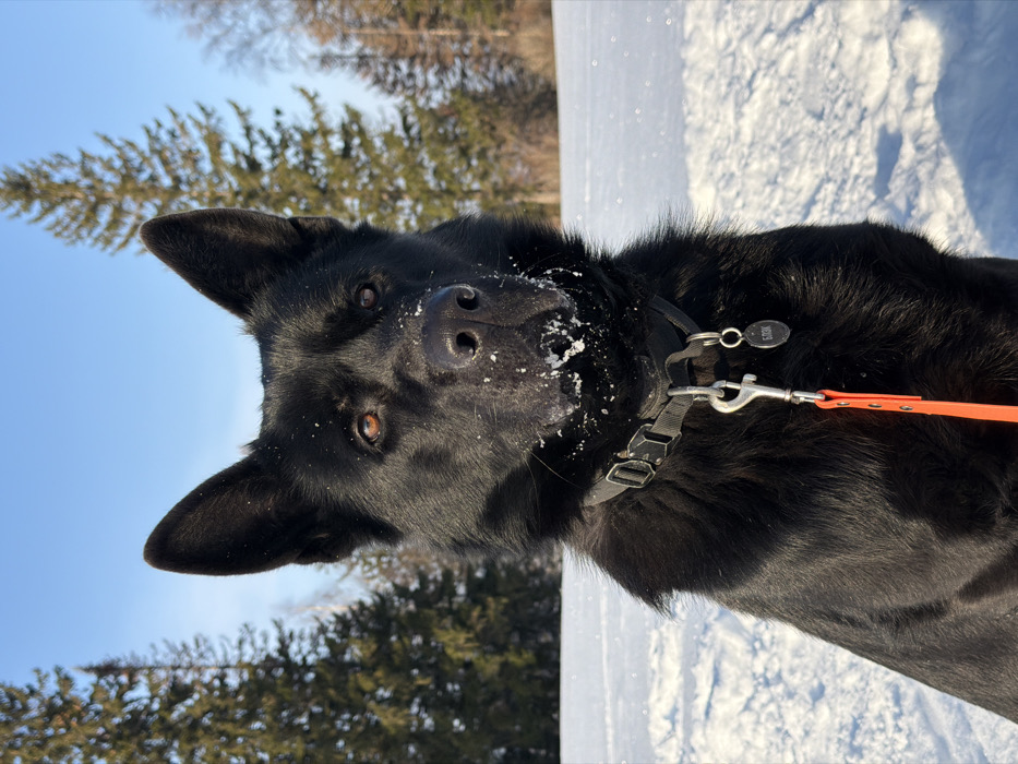 - "This image displays a black canine, consistent with a German Shepherd breed, situated outdoors in a snow-covered landscape within the city of Ольховка, Russia" by FM-kDhAx1, licensed under CC BY 4.0