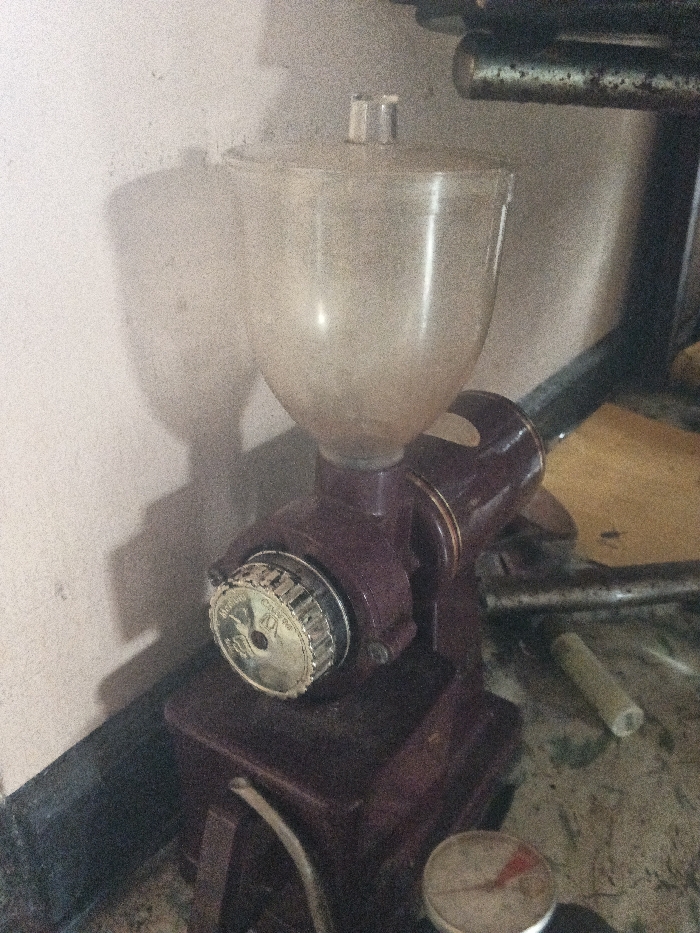 - "An electric coffee grinder, dark red/maroon in color, is centrally positioned against a light-colored, textured wall in Dogsenang Gorphoog, Bhutan" by FM-Dyp7J3, licensed under CC BY 4.0