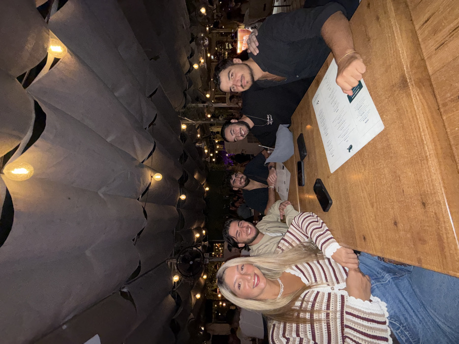 - "A group of five young adults, consisting of one female and four males, are seated at a wooden table in an outdoor dining area in the city of Ramat Gan, Israel" by FM-ol5qd2, licensed under CC BY 4.0
