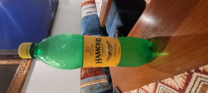 - "A green plastic bottle labeled "HAMOUD LA BLANCHE" rests horizontally on a brown wooden surface" by FM-lpZ3r2, licensed under CC BY 4.0