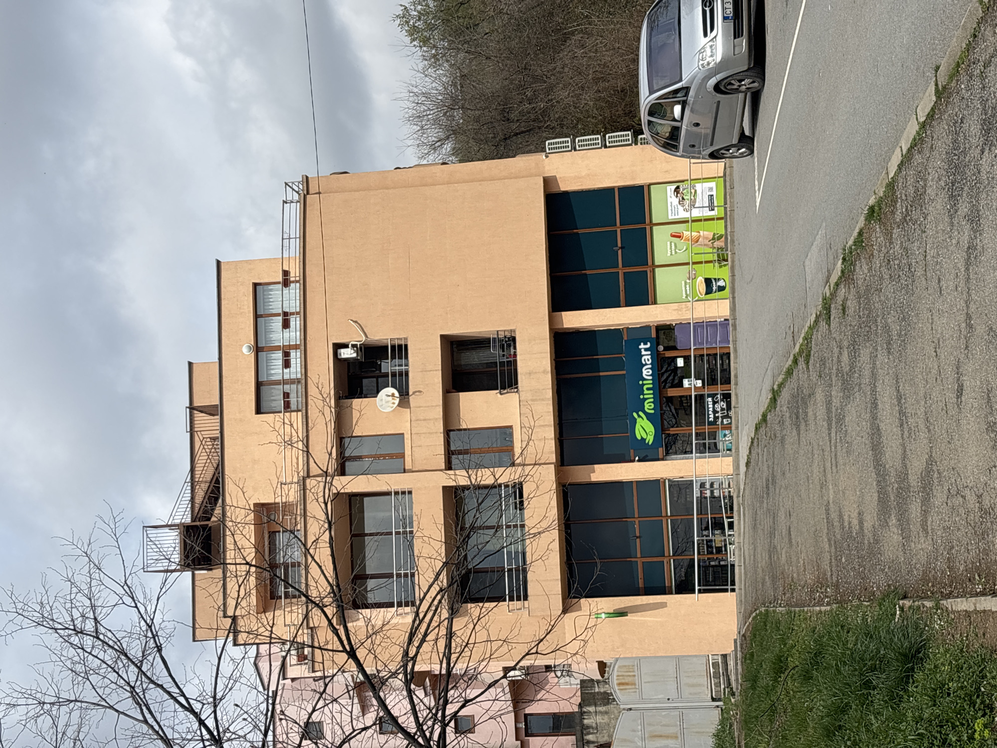 The image depicts a tan-colored building in Stara Zagora, Bulgaria, identified by a "minimart" sign with a green leaf logo