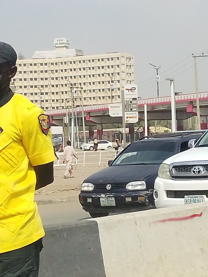 This image depicts a daytime street scene in Gandu Albasa, Nigeria