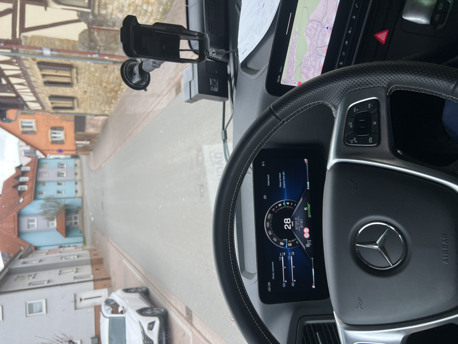 - "The image displays a forward-facing view from the driver's seat of a Mercedes-Benz vehicle, possibly a truck, in Mühlhausen, Germany" by FM-N4h4g1, licensed under CC BY 4.0