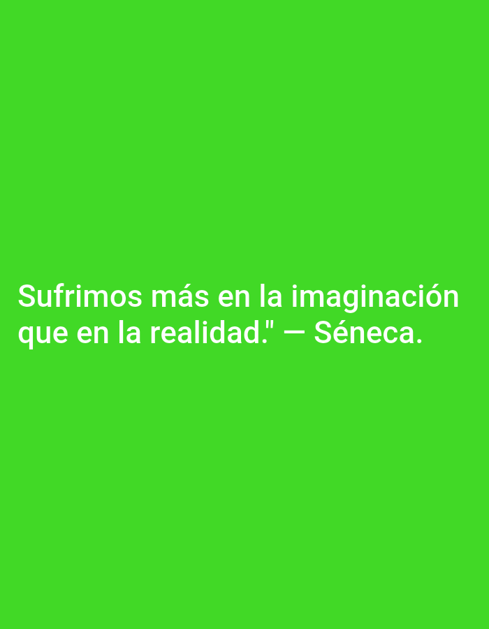 - "A green background features the quote "Sufrimos más en la imaginación que en la realidad" by FM-GeBdt2, licensed under CC BY 4.0