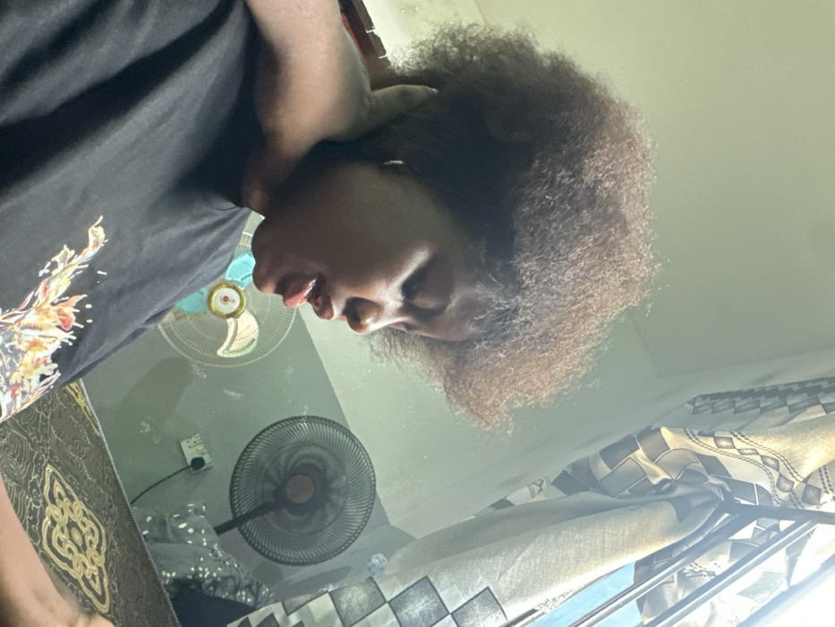 - "An indoor scene in Ipetumodu, Nigeria, depicts a dark-skinned individual with reddish-brown afro-textured hair, shown in a side profile facing right" by FM-rP9JX2, licensed under CC BY 4.0