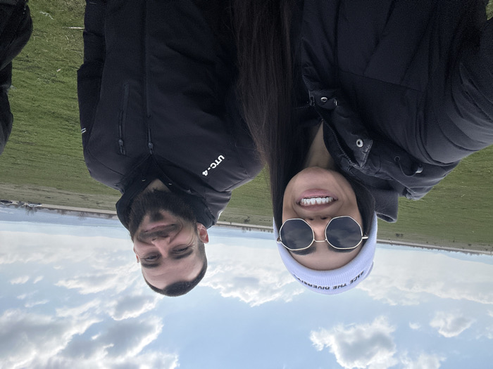 - "A selfie-style outdoor photograph, taken in Buhovtsi, Bulgaria, depicts two individuals in the foreground against an expansive green field under a partly cloudy sky" by FM-QsXQ73, licensed under CC BY 4.0