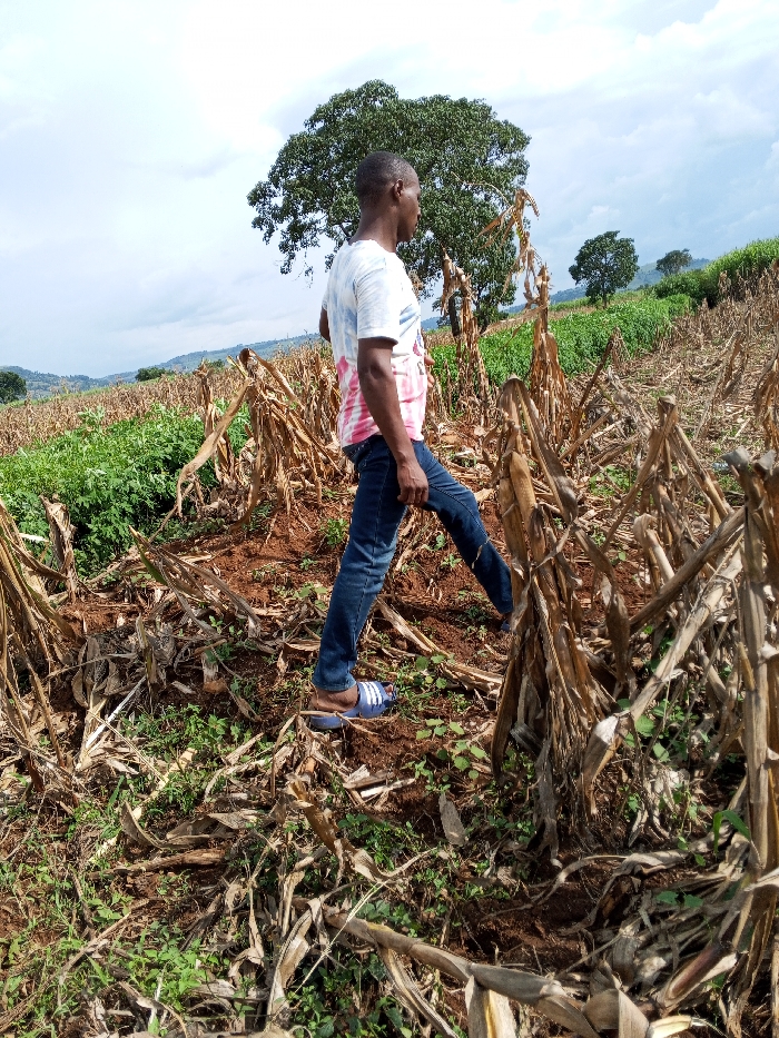 A male individual is positioned in an agricultural field within Keyian ward, Kenya