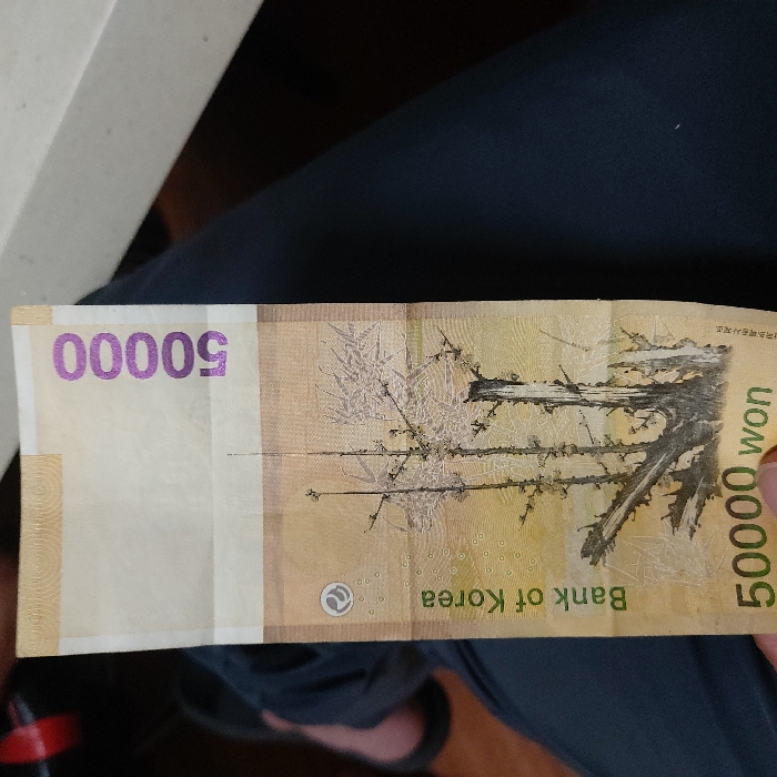 - "A single 50,000 South Korean Won banknote is depicted, held vertically by a human hand" by FM-xMf1b2, licensed under CC BY 4.0