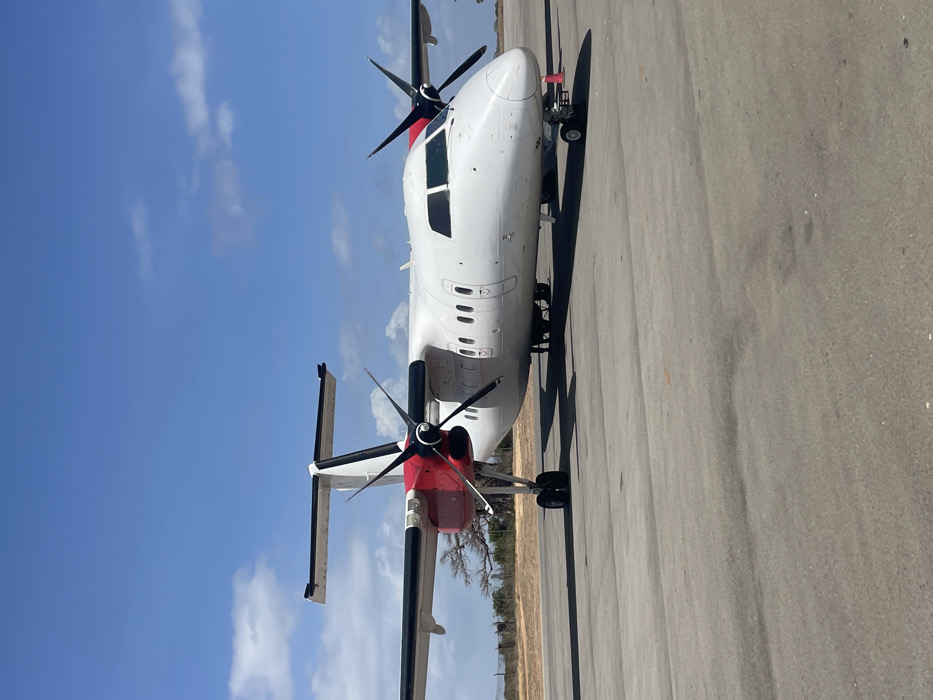 - "A white twin-turboprop aircraft, likely a Bombardier Dash 8 series, is parked on an asphalt tarmac at Lamu Manda Airport in Lamu, Kenya" by FM-nzIrg2, licensed under CC BY 4.0