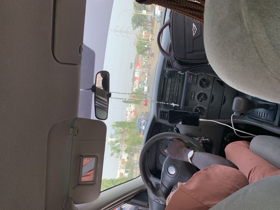 - "The image captures the interior of a vehicle, viewed from a rear passenger seat, looking forward onto a road within the city of Aso, Nigeria" by FM-QqKer2, licensed under CC BY 4.0