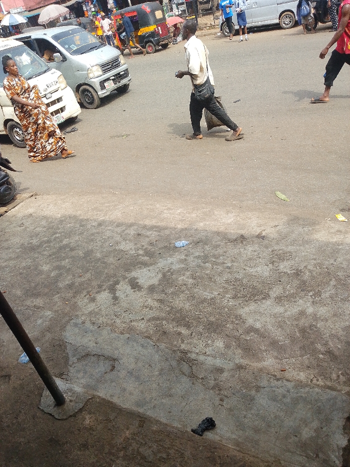 This image depicts a daylight street scene in Nkpor, Nigeria