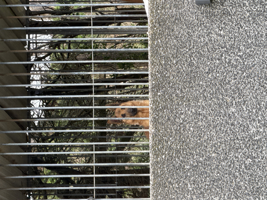 - "The scene depicts a German Shepherd dog observed through a metallic barred enclosure, positioned above a textured concrete wall, likely within Marche-en-Famenne, Belgium" by FM-dgbg72, licensed under CC BY 4.0
