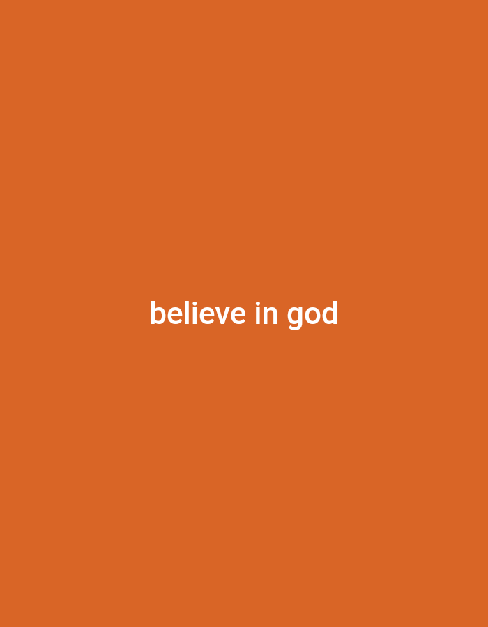 The image is a solid orange background with the text "believe in god" written in white in the center