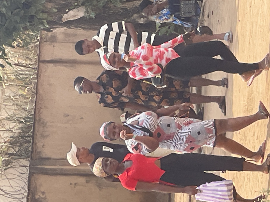 The scene depicts an outdoor gathering or street activity in Umuokpu, Nigeria, under daylight conditions