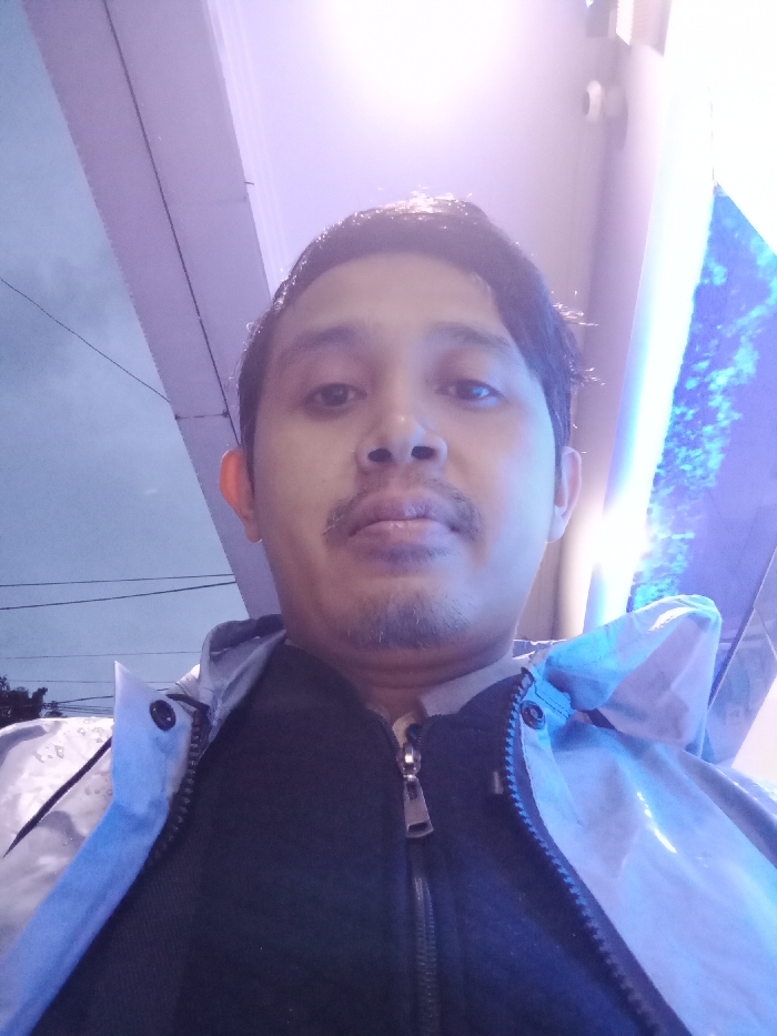The image displays a close-up portrait of an adult male in the city of Kramat, Indonesia