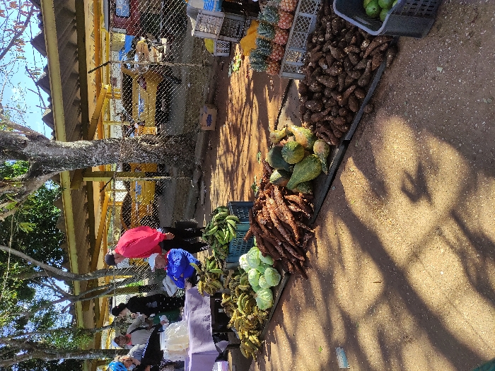 This image depicts an outdoor market scene in Ciego de Ávila, Cuba