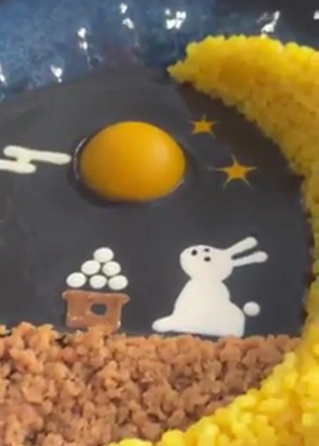 - "A plate of food decorated with a moon-themed design is displayed" by FM-J9Tlk2, licensed under CC BY 4.0