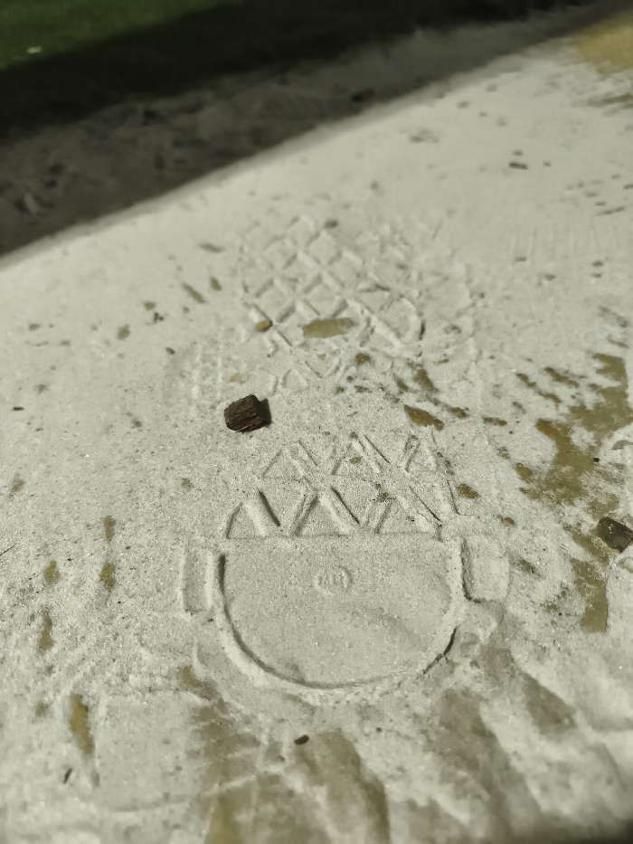 - "The scene is a close-up, low-angle view of a single shoe print impressed into a damp, light-colored sand or fine gravel surface in Baan Bo Phut, Thailand" by FM-H4hzl2, licensed under CC BY 4.0