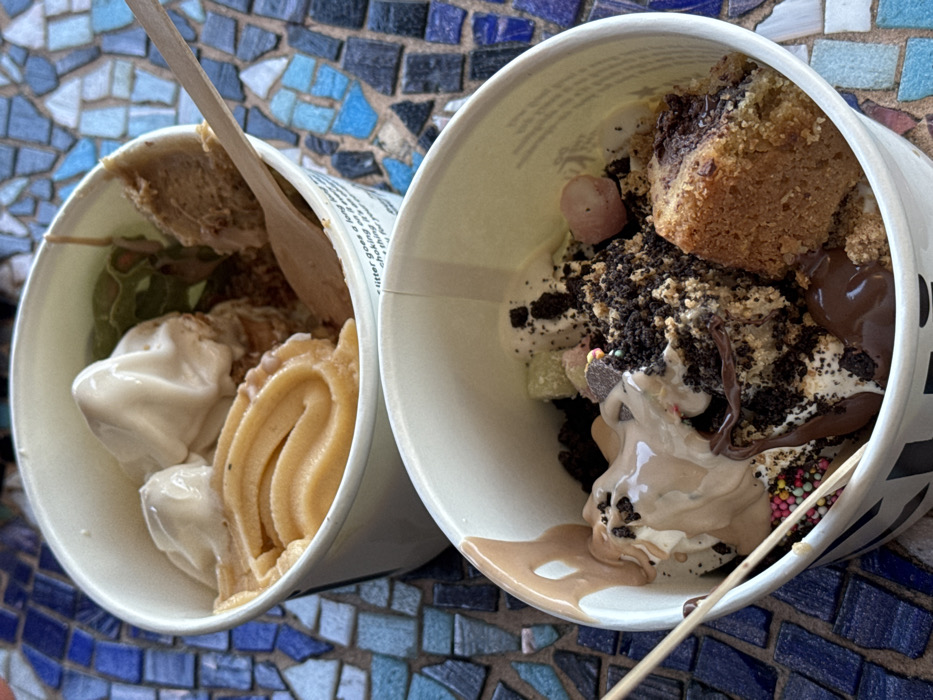 - "Two cups of prepared dessert, likely frozen yogurt or ice cream, rest on a mosaic-tiled surface at Bondi Beach, Australia" by FM-EWrDA3, licensed under CC BY 4.0