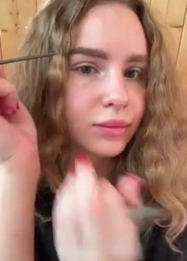 - "A young woman with wavy blonde hair is applying makeup to her eyebrows" by FM-jBHPC3, licensed under CC BY 4.0