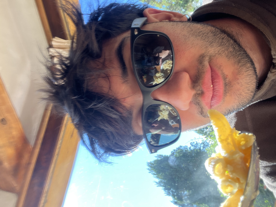 A headshot-style image captures a young adult male in what appears to be a bright, sunny daytime setting, consistent with the natural and architectural characteristics of San Carlos de Bariloche, Argentina