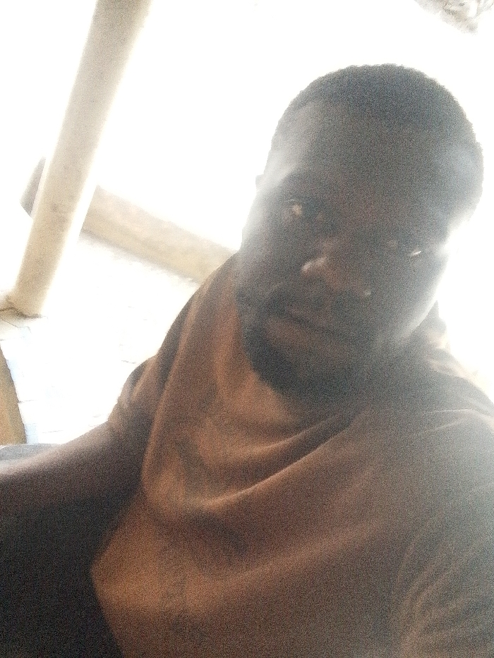 A single adult male with dark skin, short dark hair, and a beard is depicted in a low-angle, close-up photograph taken in Unknown, Unknown