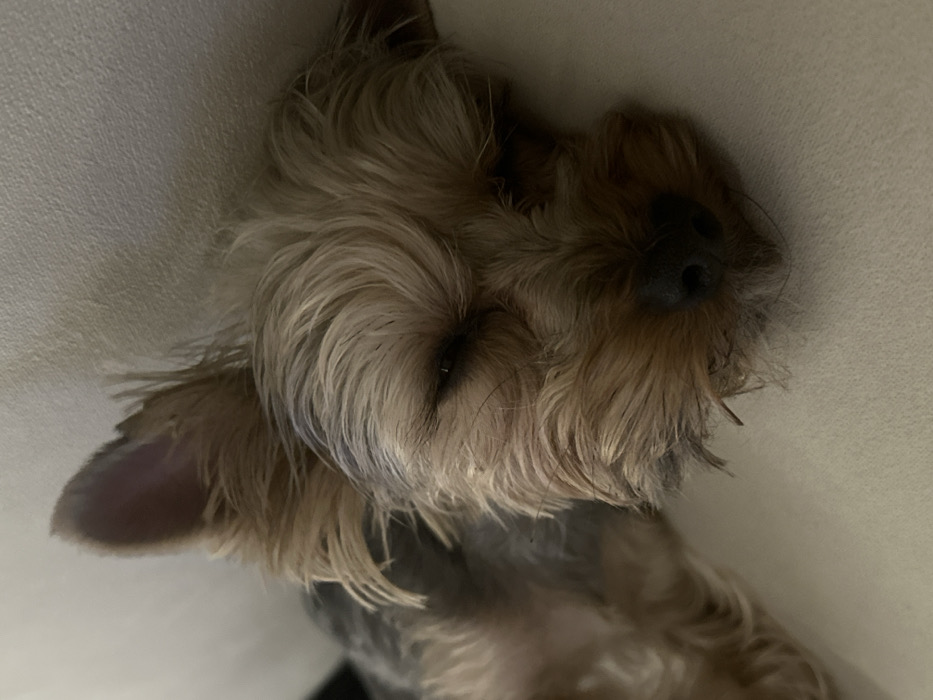 - "A small canine, identified as a Yorkshire Terrier or similar terrier breed, is observed in a state of repose" by FM-vNohV2, licensed under CC BY 4.0
