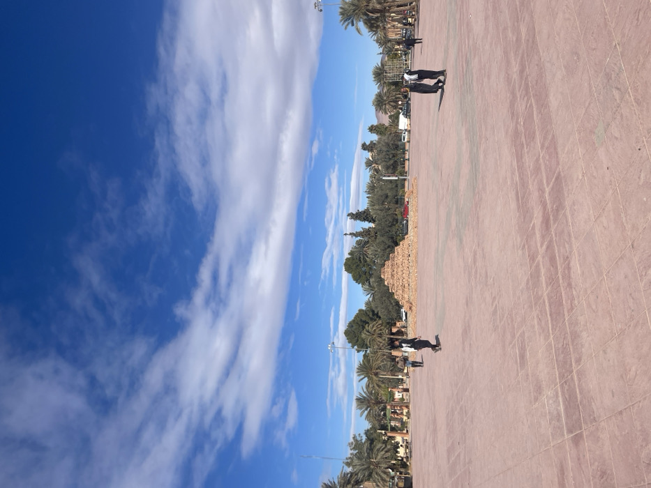 - "The image depicts a large, expansive public square in Errachidia, Morocco, under a bright blue sky with scattered white clouds" by FM-7n7VB3, licensed under CC BY 4.0