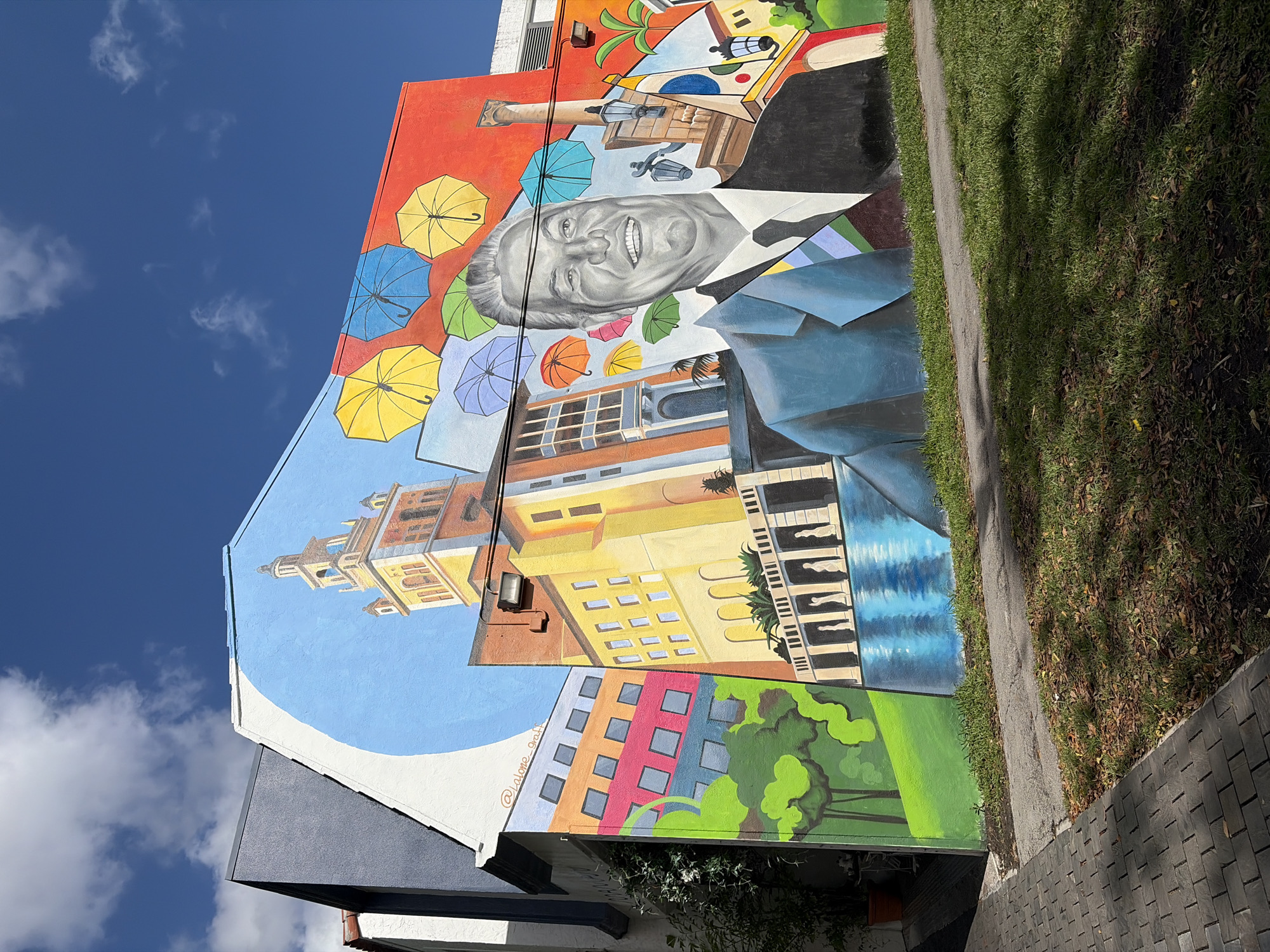 The image depicts a mural on the side of a building in Coral Gables, Florida, United States of America