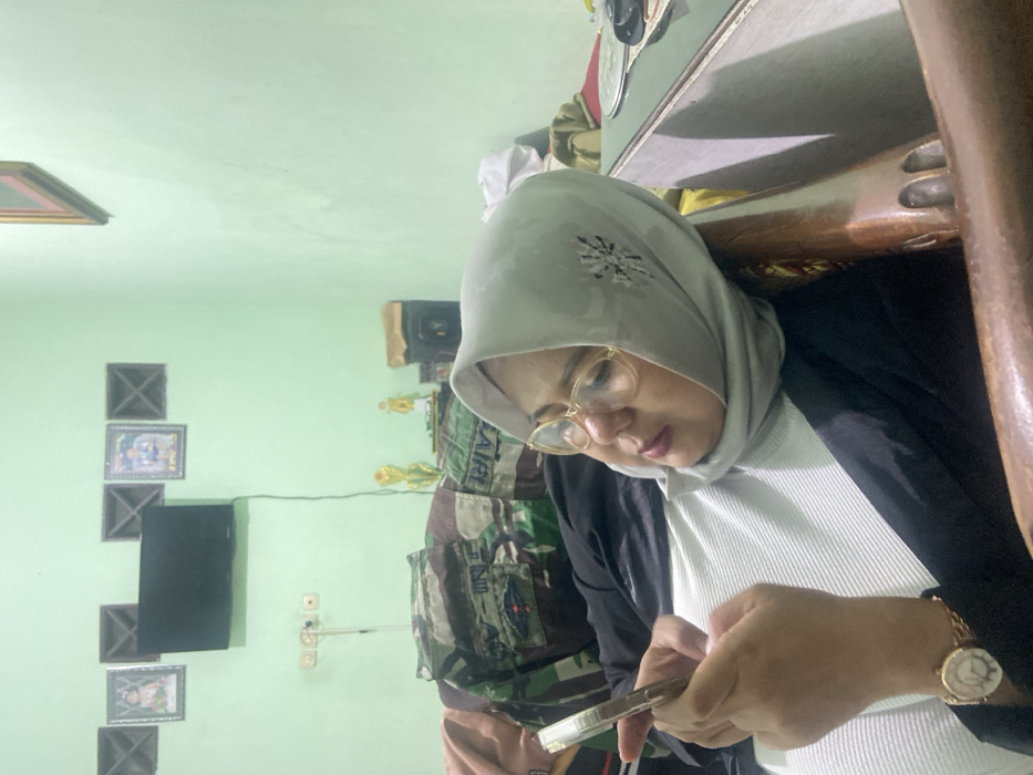 An adult female is depicted in a residential interior in Sumorame, Indonesia