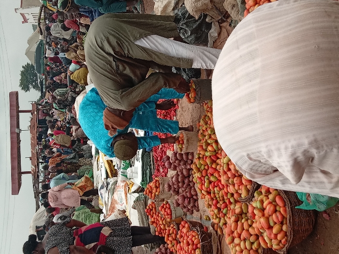 The image captures a bustling outdoor market scene under an overcast sky, located in the city of Unknown, Unknown